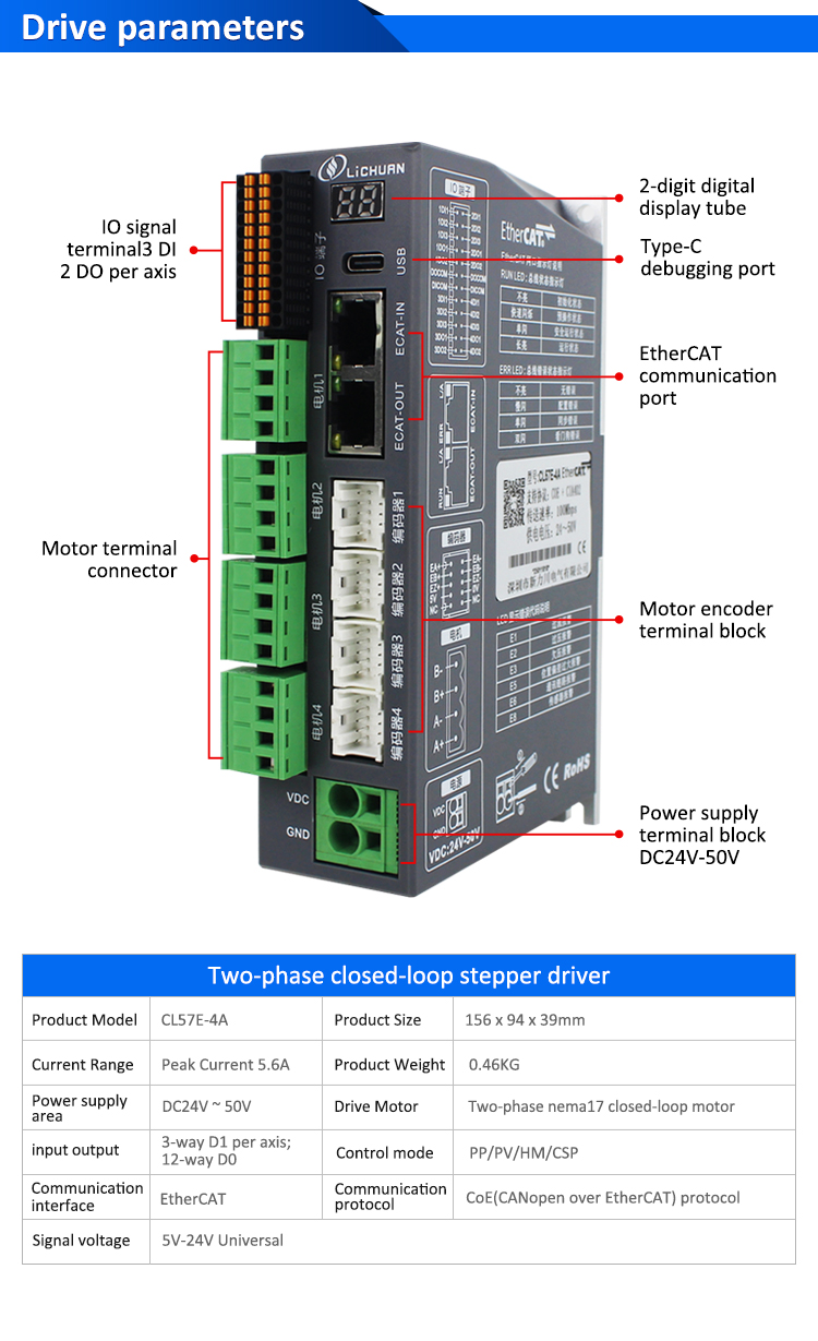 Ethercat 2phase Nema23 2-Axis DC ပိတ်ထားသော Loop Stepper Motor Drivers ကိရိယာများ
