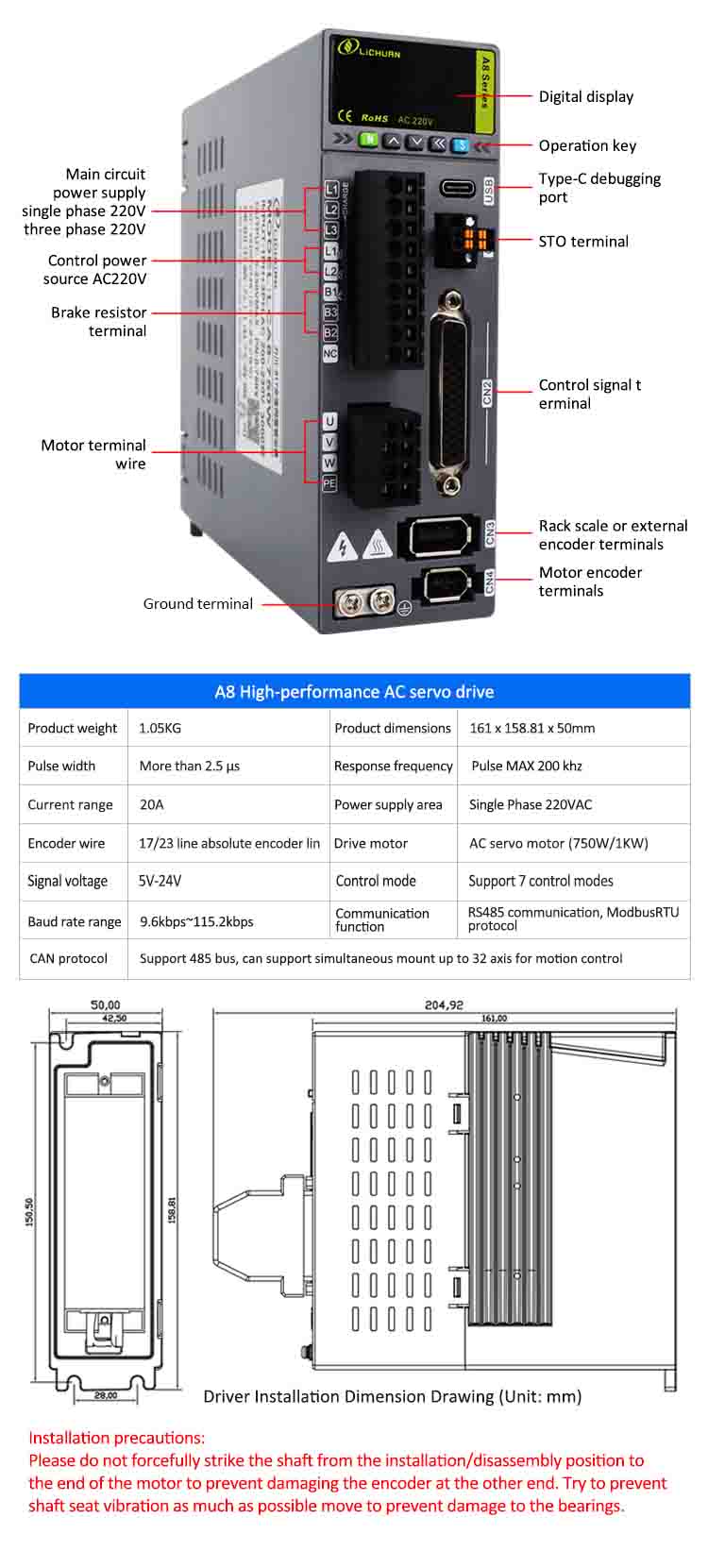 ထုတ်ကုန်အမည်-Lichuan A8 တိကျမှုမြင့်မားသော STO ABZ AC Servo Motor Drivers Kit