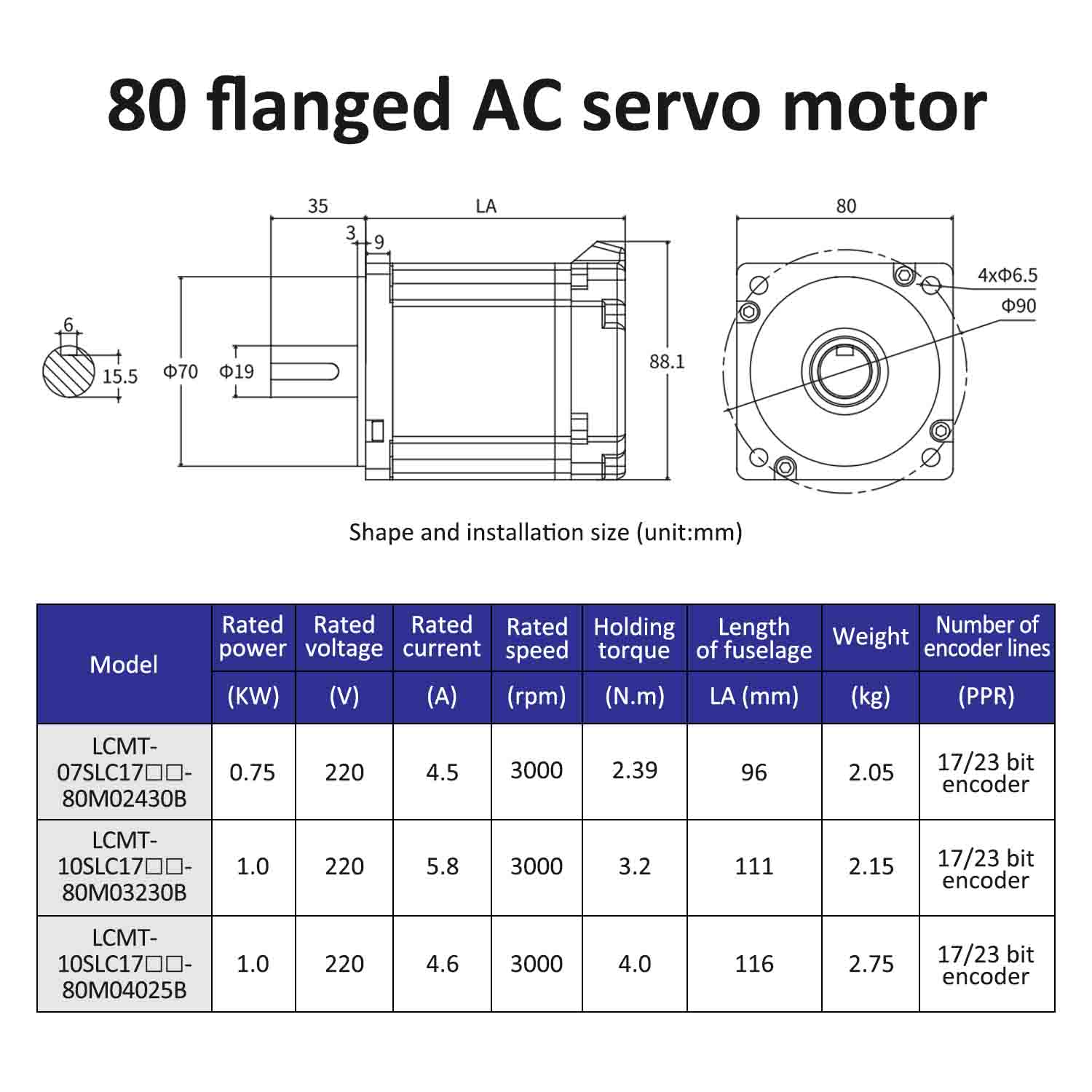 | မော်တော်မော်ဒယ် | LCMT-07SLC17-80M02430B | LCMT-10SLC17-80M03230B | LCMT-10SLC17-80M04025B |