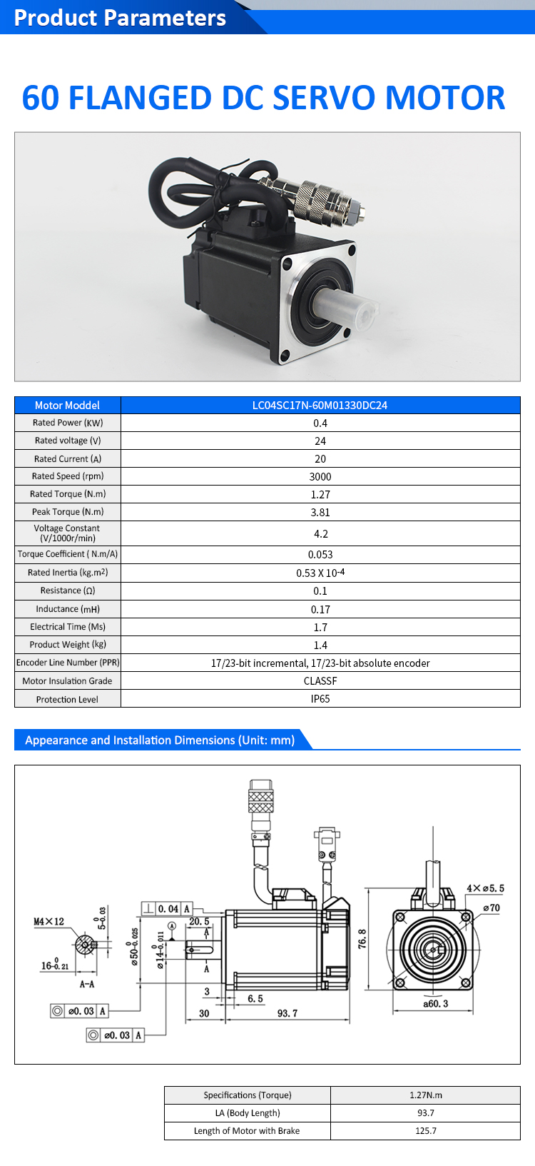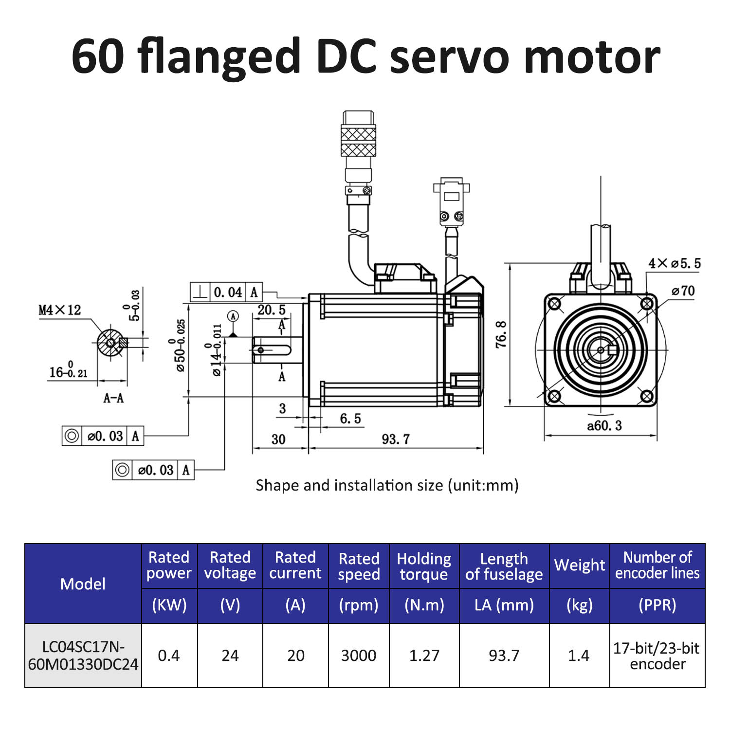Pulse / RS485 / Canopen / Canopen / Ethercat 40 သည် 100w အနိမ့်အနိမ့်အပြိုင် DC servo motor drivers kit flanged