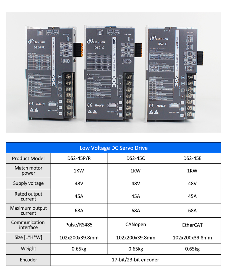 Pulse / RS485 / Canopen / Canopen / Canopen / Ethercat 60 သည် 200w / 400w / 600w / 600w Low Voltage DC servo motor driver